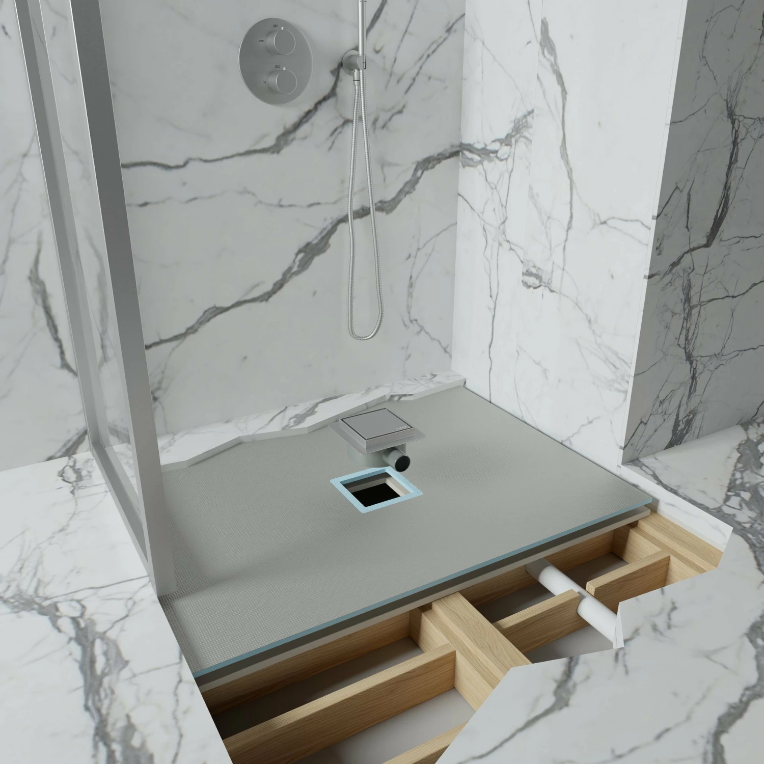 Lusso WetFloor Universal wet room tray has been designed with easy installation in mind.Each tray has a total height of 22mm which falls in line with the average household flooring thickness.
