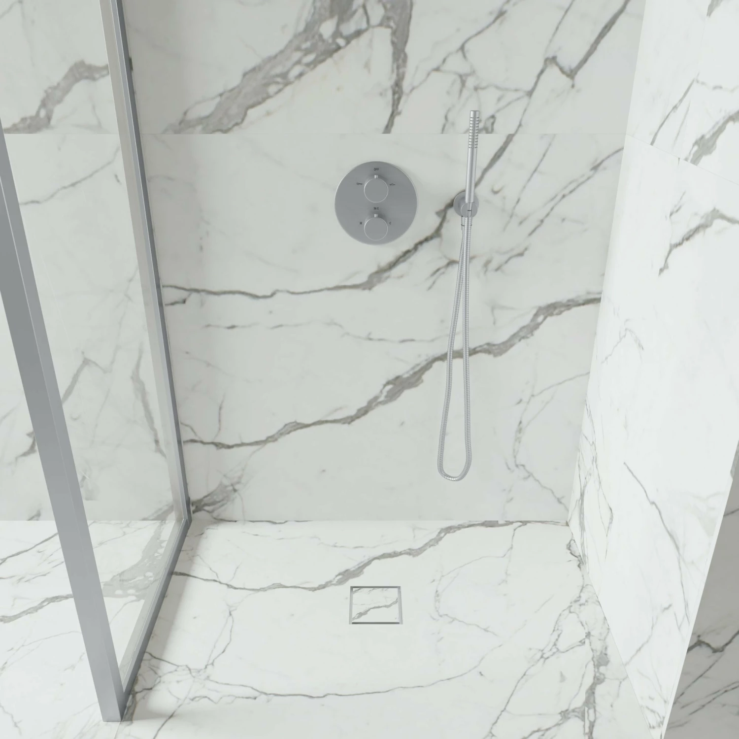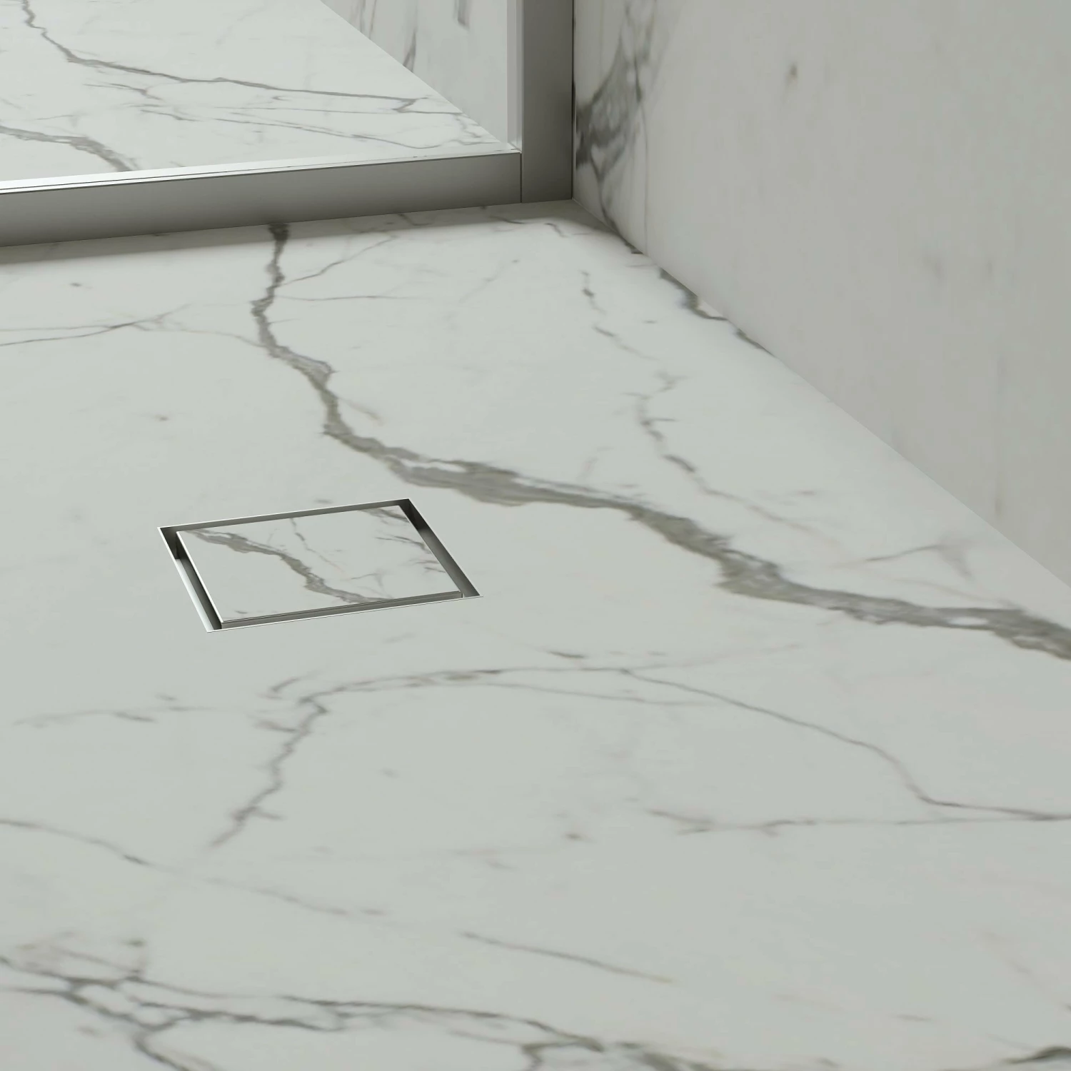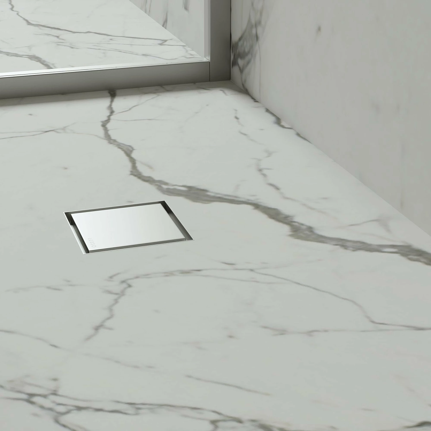 20 Year Guarantee Unique Lusso Waste System – You have the option to have a flat brushed stainless finish, or simply turn the drain cover over and tile it to match your floor tiles!